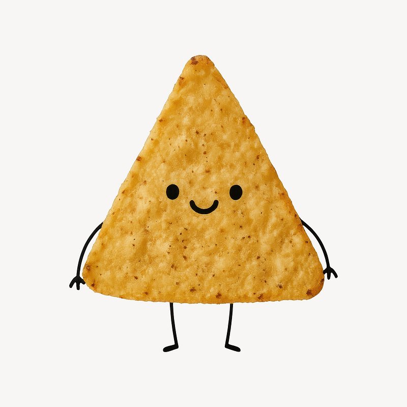 Cute nacho chip character illustration. https://www.rawpixel.com/image/21868889/cute-nacho-chip-character-illustrationView license