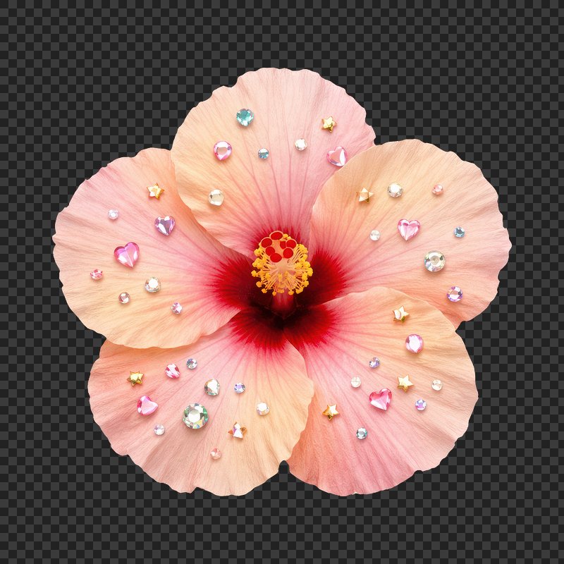 PNG Decorative hibiscus with jewels. https://www.rawpixel.com/image/25342087/png-decorative-hibiscus-with-jewelsView license