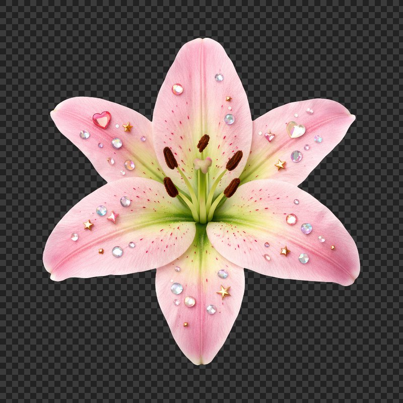 PNG Pink lily adorned with jewels. https://www.rawpixel.com/image/25342072/png-pink-lily-adorned-with-jewelsView license