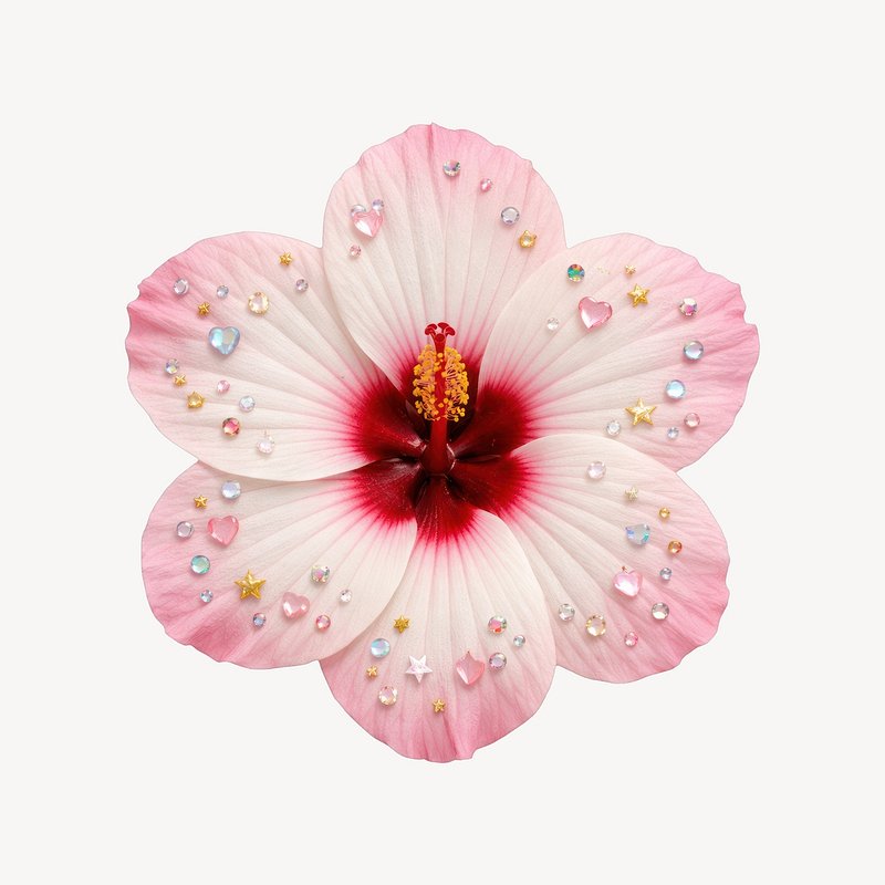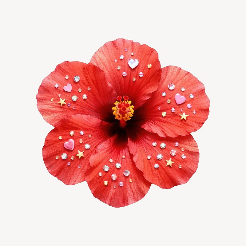 Decorative hibiscus with jewels. https://www.rawpixel.com/image/25398501/decorative-hibiscus-with-jewelsView license