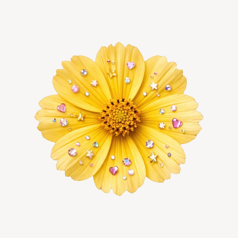 PNG Yellow flower adorned with gems. https://www.rawpixel.com/image/25342117/png-yellow-flower-adorned-with-gemsView license