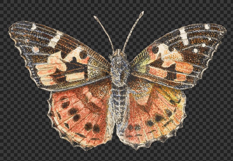 PNG Distelvlinder (Vanessa cardui) (1700 - 1800) by Pieter Barbiers. Element on transparent background. https://www.rawpixel.com/image/16408887/png-background-butterflyView license