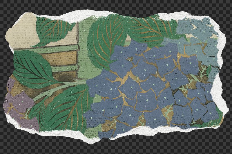 PNG Flowers of a Hundred Worlds (Momoyogusa): Hydrangea (Ajisai) by Kamisaka Sekka. Remixed by rawpixel. https://www.rawpixel.com/image/25508528/png-torn-paperView license