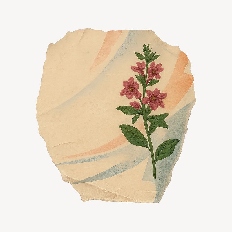 Ephemera paper rose flower plant leaf. https://www.rawpixel.com/image/15203494/ephemera-paper-rose-flower-plant-leafView license