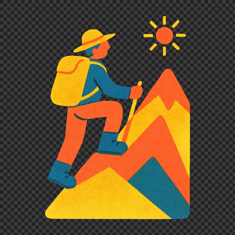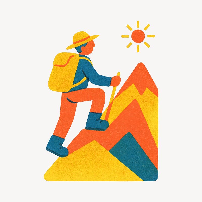 Colorful hiker climbing mountain illustration. https://www.rawpixel.com/image/22331857/colorful-hiker-climbing-mountain-illustrationView license