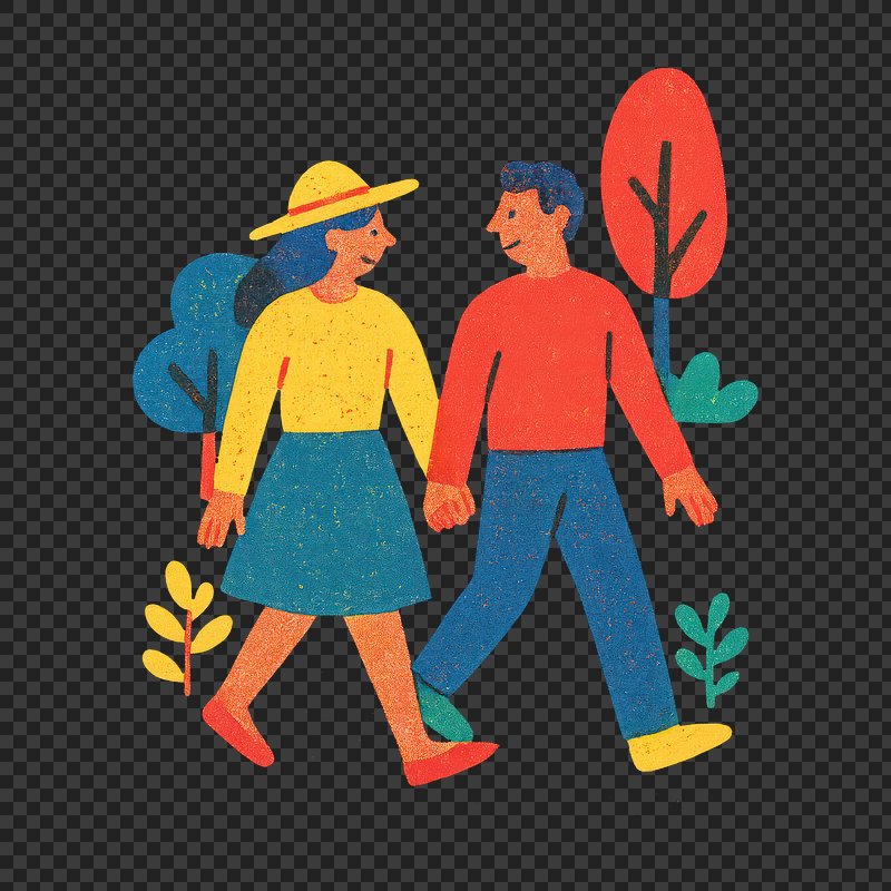 Colorful couple walking illustration. https://www.rawpixel.com/image/22329072/colorful-couple-walking-illustrationView license