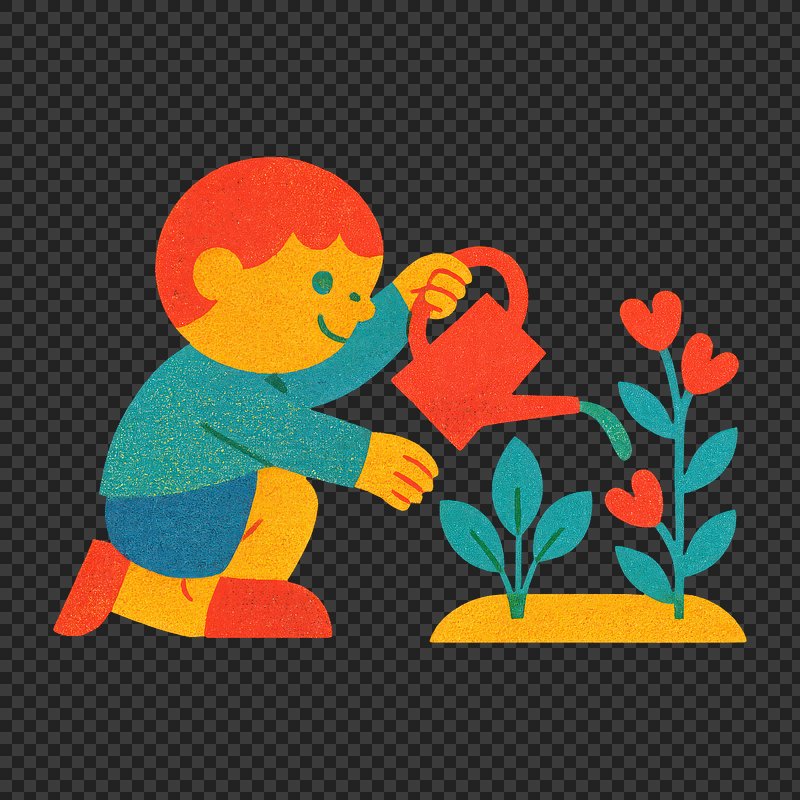 PNG Child watering plants illustration. https://www.rawpixel.com/image/21803844/png-child-watering-plants-illustrationView license
