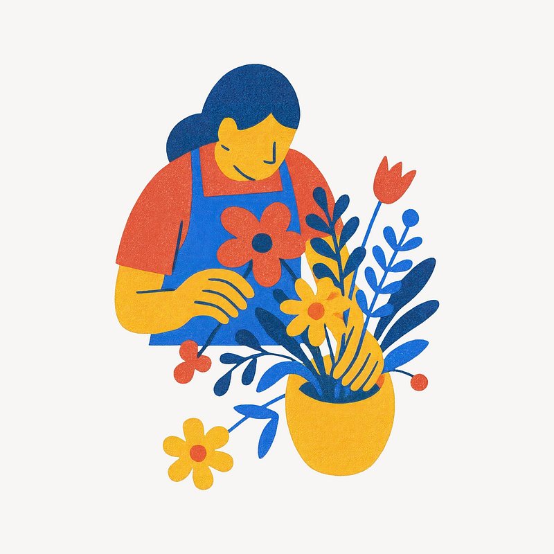 PNG Colorful gardener with flowers https://www.rawpixel.com/image/21807518/png-colorful-gardener-with-flowersView license