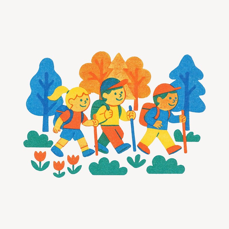 Colorful children hiking illustration. https://www.rawpixel.com/image/22328194/colorful-children-hiking-illustrationView license