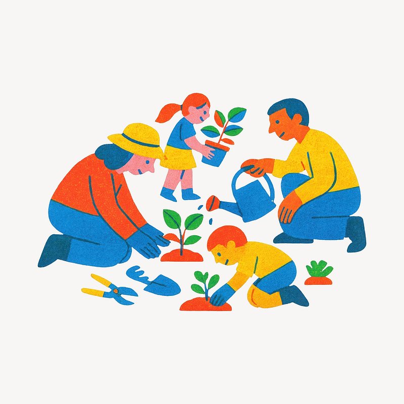 Family gardening together illustration. https://www.rawpixel.com/image/22333458/family-gardening-together-illustrationView license