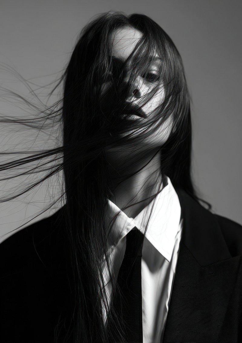 Elegant monochrome portrait, dramatic lighting. https://www.rawpixel.com/image/25790295/photo-image-background-aesthetic-faceView license