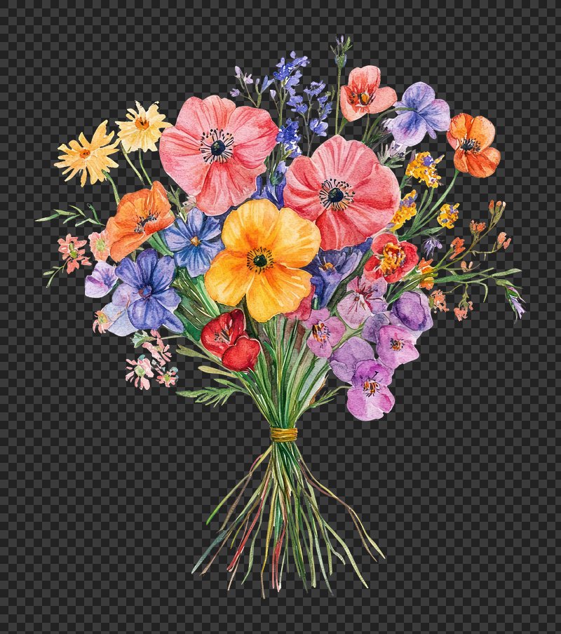 PNG Flower bouquet flowers illustration watercolor. https://www.rawpixel.com/image/17560858/png-flower-bouquet-flowers-illustration-watercolorView license