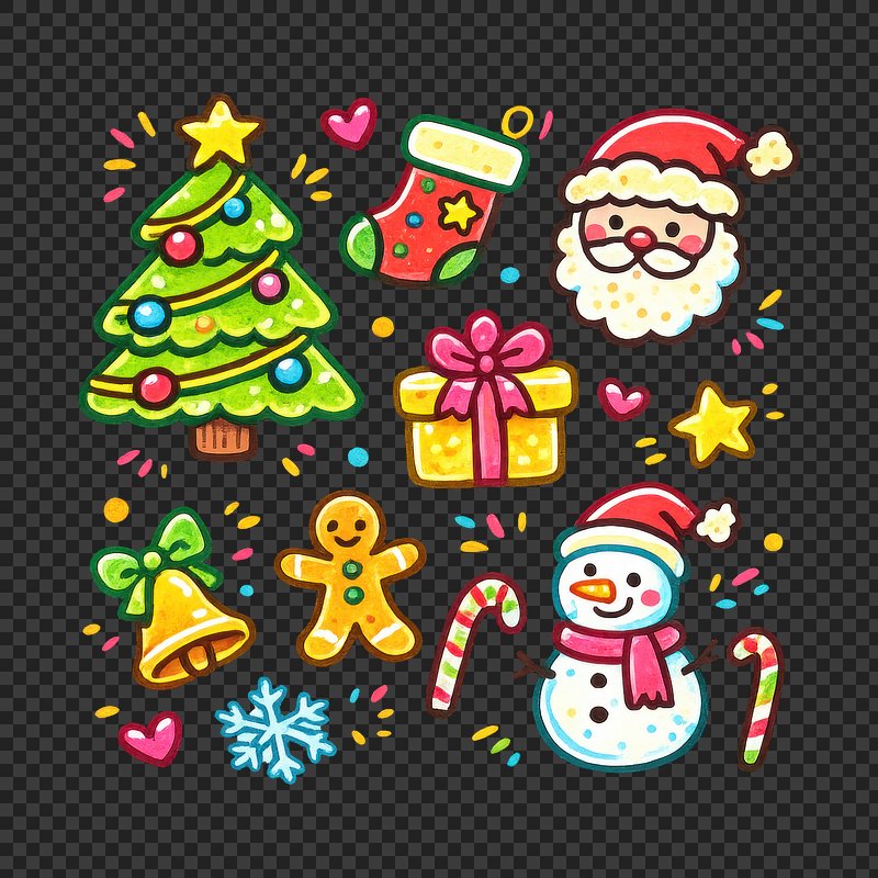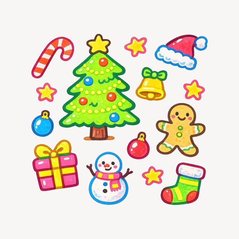 PNG Festive Christmas cartoon elements https://www.rawpixel.com/image/24998854/png-festive-christmas-cartoon-elementsView license