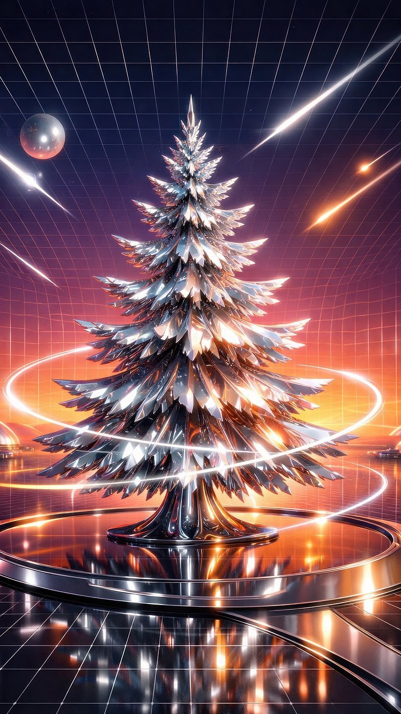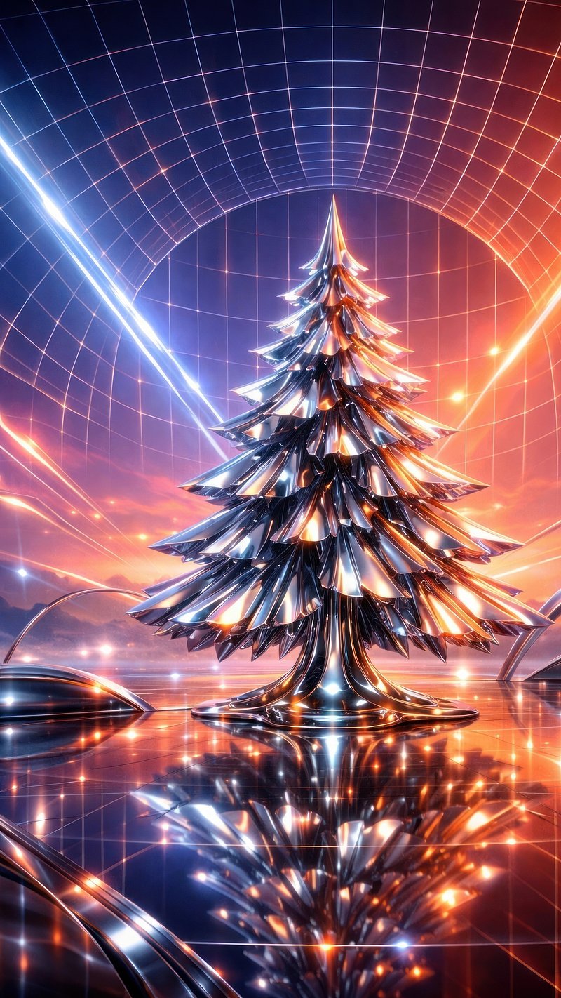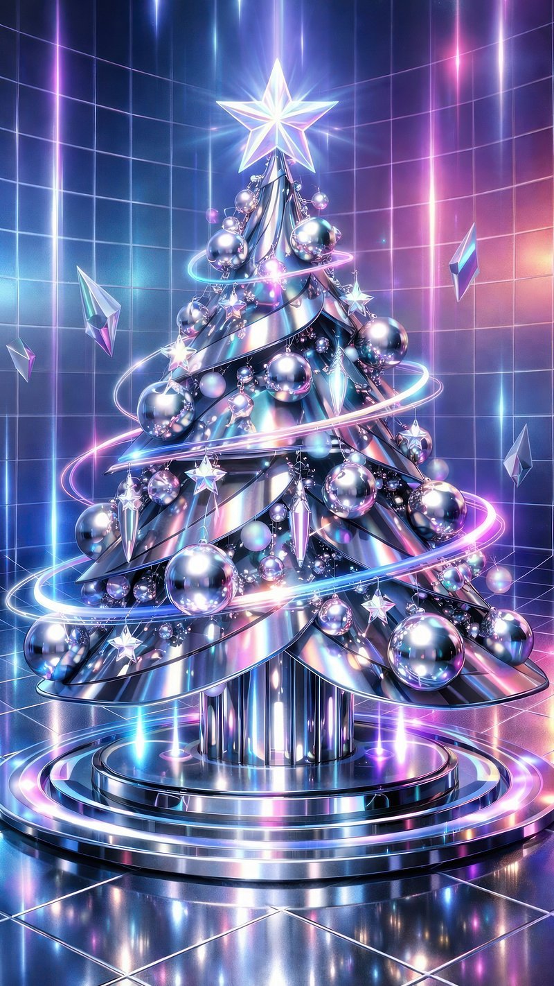 Futuristic metallic Christmas tree mobile wallpaper https://www.rawpixel.com/image/25762974/futuristic-metallic-christmas-tree-mobile-wallpaperView license