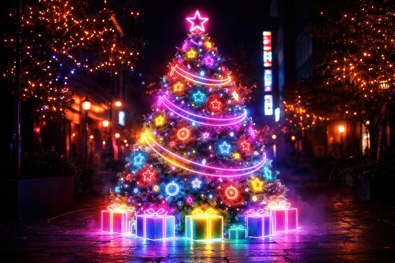 Vibrant neon Christmas celebration https://www.rawpixel.com/image/25352526/vibrant-neon-christmas-celebrationView license