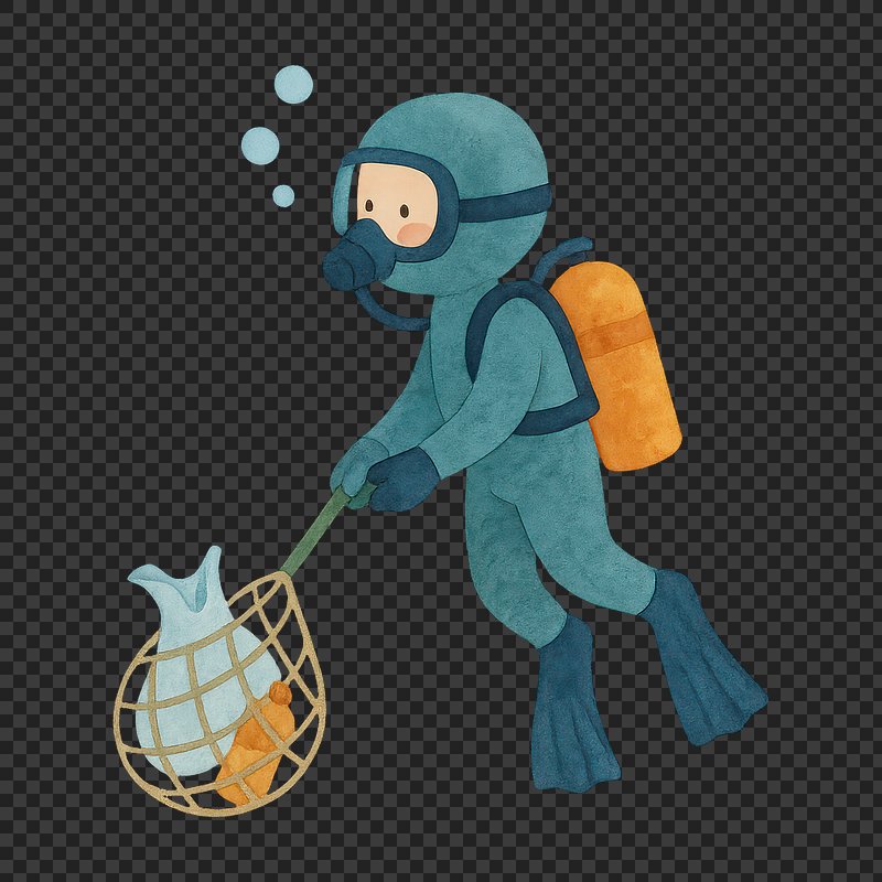 PNG Diver collecting ocean waste illustration. https://www.rawpixel.com/image/19145316/png-diver-collecting-ocean-waste-illustrationView license