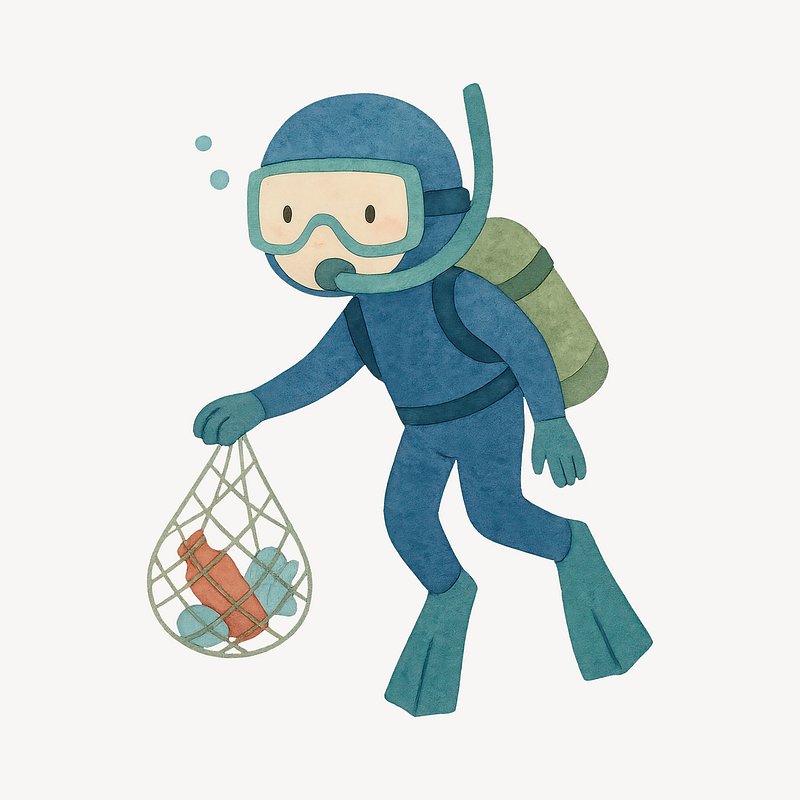 PNG Diver collecting ocean plastic waste. https://www.rawpixel.com/image/19145374/png-diver-collecting-ocean-plastic-wasteView license