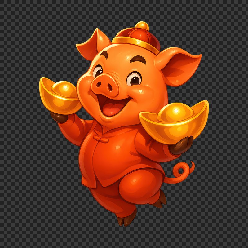Joyful pig holding gold ingots. https://www.rawpixel.com/image/24971156/joyful-pig-holding-gold-ingotsView license