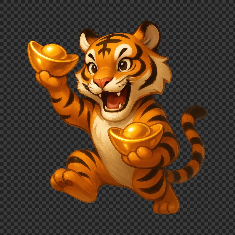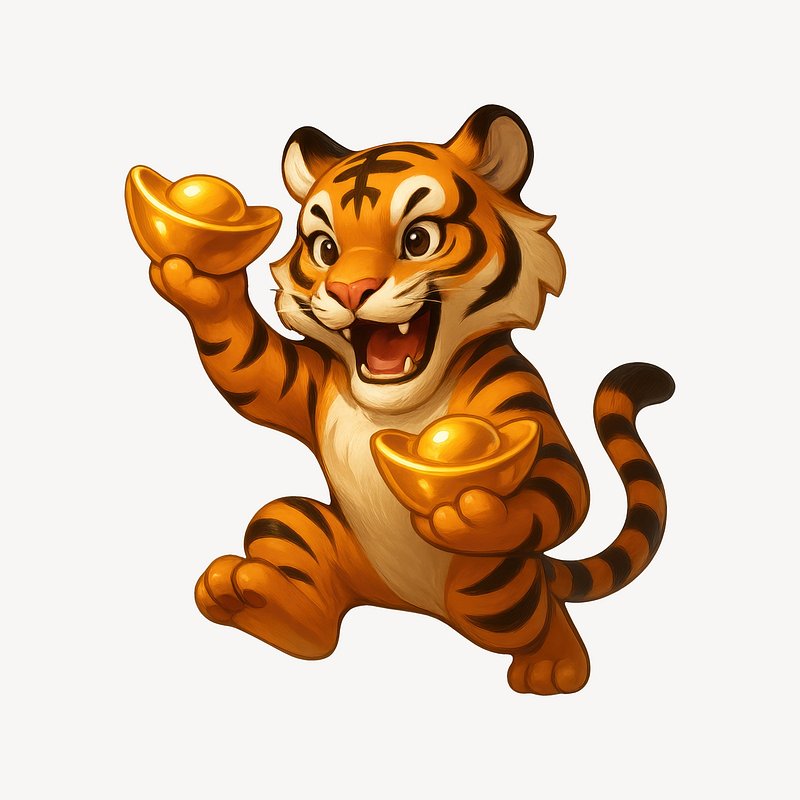 Cute tiger holding gold ingots. https://www.rawpixel.com/image/24970931/cute-tiger-holding-gold-ingotsView license