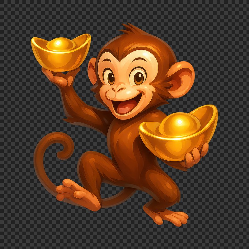 Cheerful monkey holding gold ingots. https://www.rawpixel.com/image/24971235/cheerful-monkey-holding-gold-ingotsView license