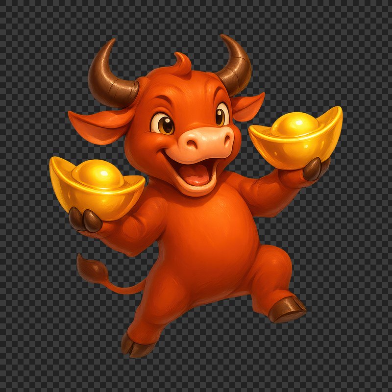 Joyful bull holding gold ingots. https://www.rawpixel.com/image/24971113/joyful-bull-holding-gold-ingotsView license