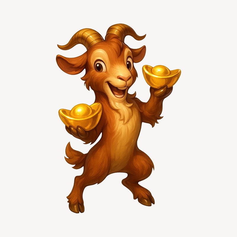 Cheerful goat holding gold ingots. https://www.rawpixel.com/image/24971311/cheerful-goat-holding-gold-ingotsView license