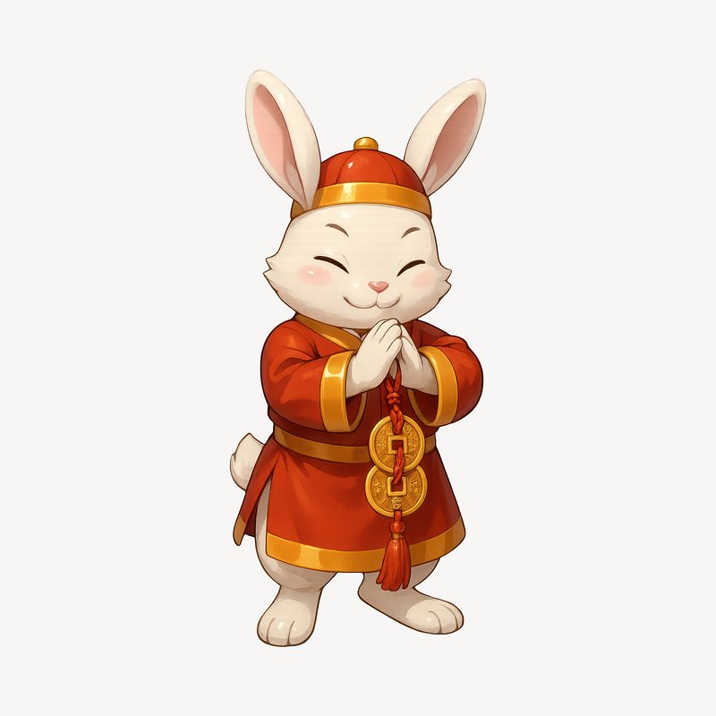 PNG Charming rabbit in traditional attire. https://www.rawpixel.com/image/24966472/png-charming-rabbit-traditional-attireView license