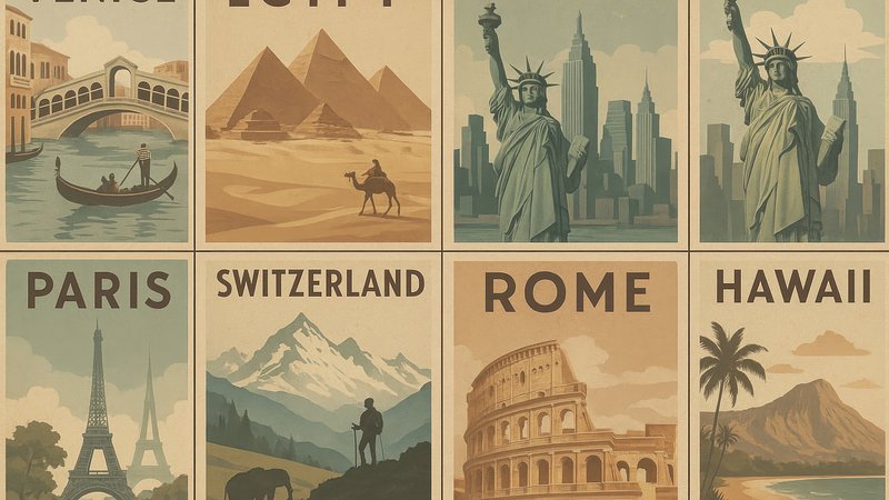 Vintage travel posters collection desktop wallpaper https://www.rawpixel.com/image/22726333/vintage-travel-posters-collection-desktop-wallpaperView license
