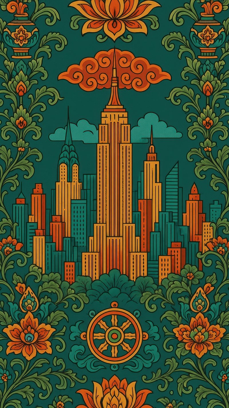 Intricate cityscape with floral patterns mobile wallpaper https://www.rawpixel.com/image/21329079/intricate-cityscape-with-floral-patterns-mobile-wallpaperView license