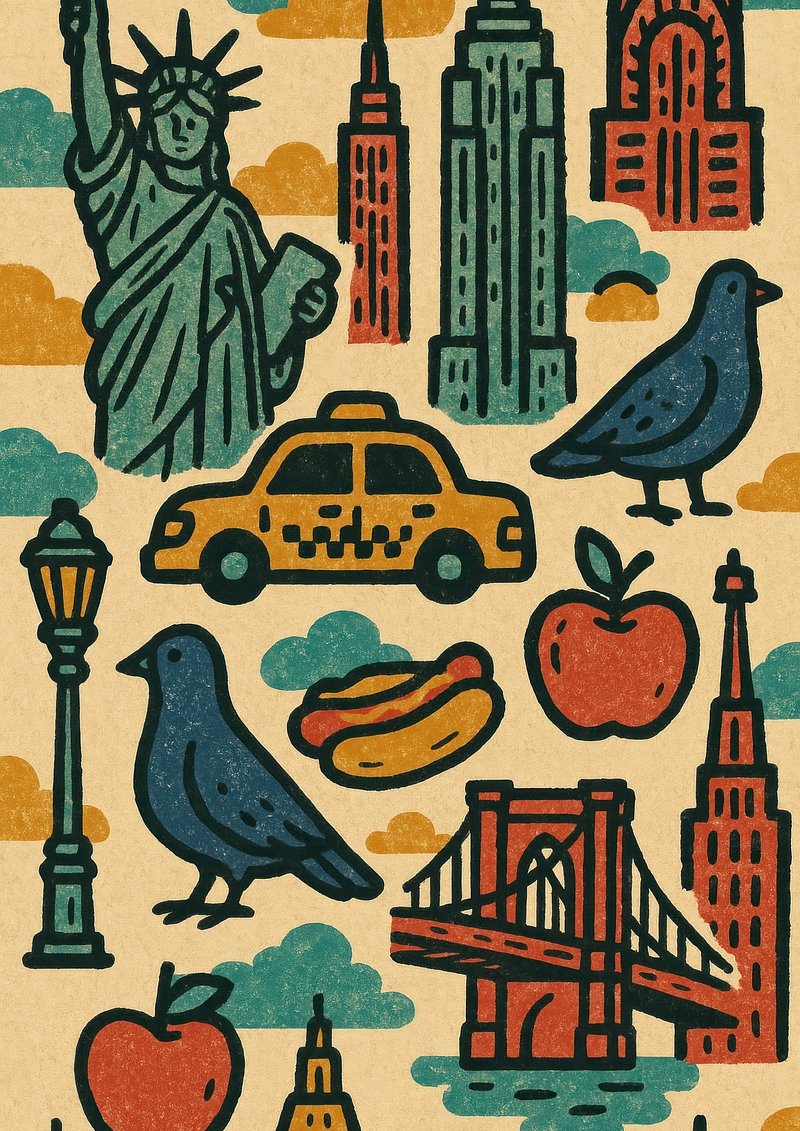 Iconic New York City illustrated pattern https://www.rawpixel.com/image/22757107/iconic-new-york-city-illustrated-patternView license