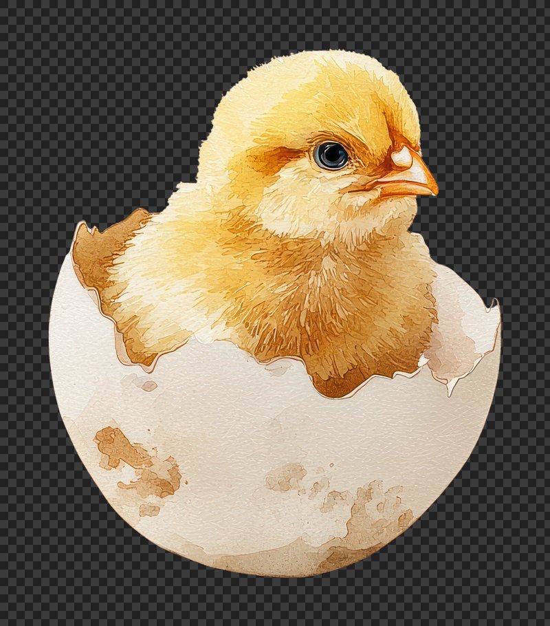 PNG Chick hatching from egg watercolor style watercolor style. https://www.rawpixel.com/image/24954571/png-chick-hatching-from-egg-watercolor-style-watercolor-styleView license