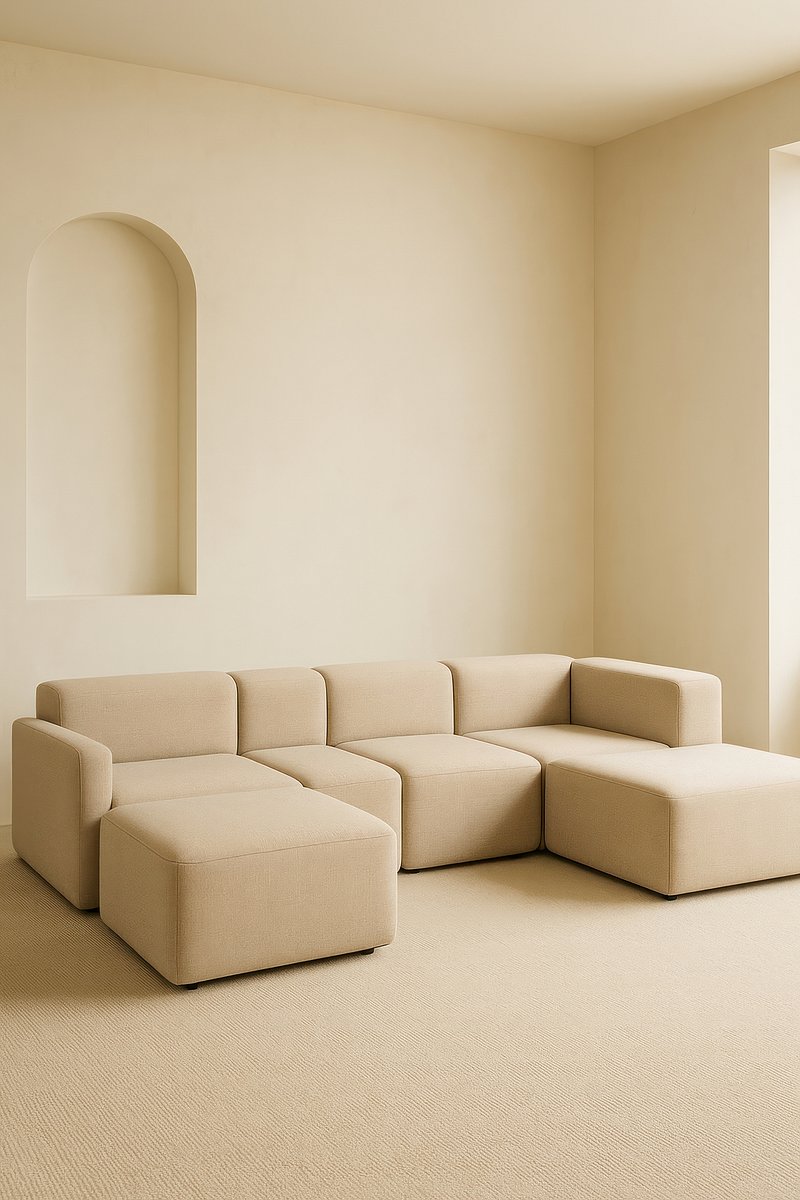Minimalist beige modular sofa elegance. https://www.rawpixel.com/image/24642125/minimalist-beige-modular-sofa-eleganceView license
