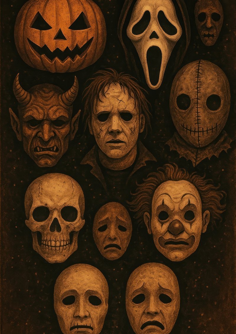 Horror masks collection illustration. https://www.rawpixel.com/image/19091892/horror-masks-collection-illustrationView license