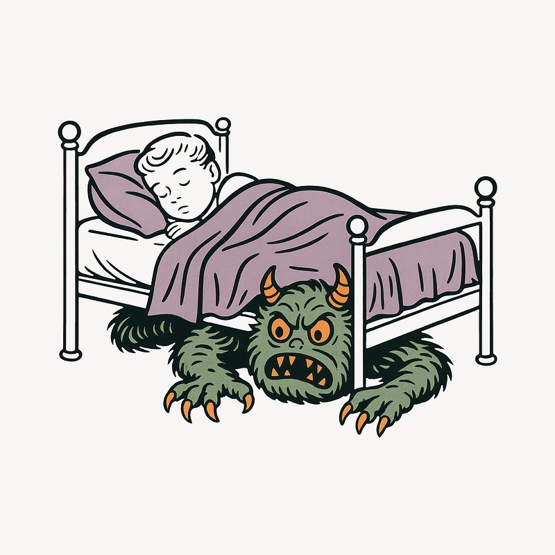 Child sleeping, monster lurking. https://www.rawpixel.com/image/22118336/child-sleeping-monster-lurkingView license