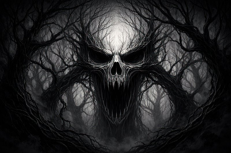 Dark forest skull illustration https://www.rawpixel.com/image/25270970/dark-forest-skull-illustrationView license