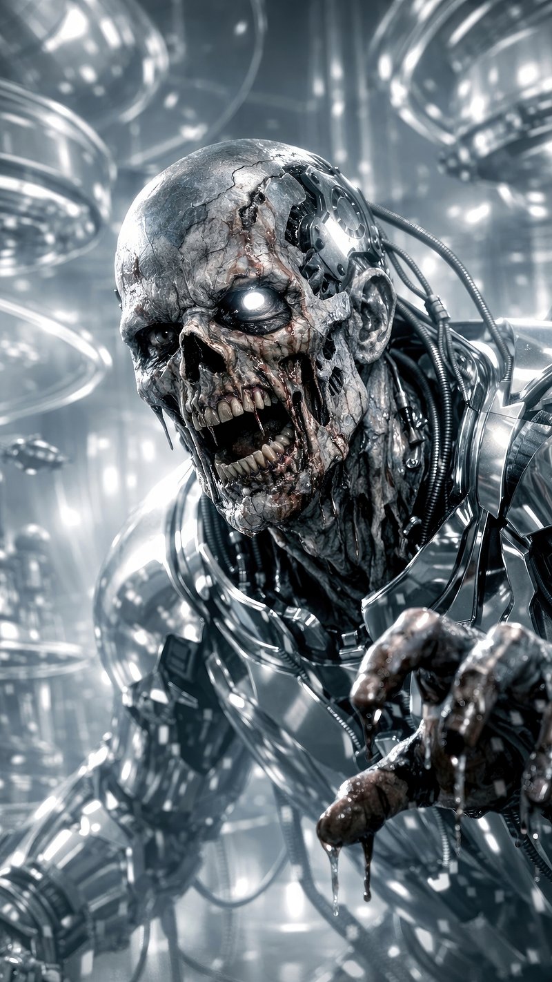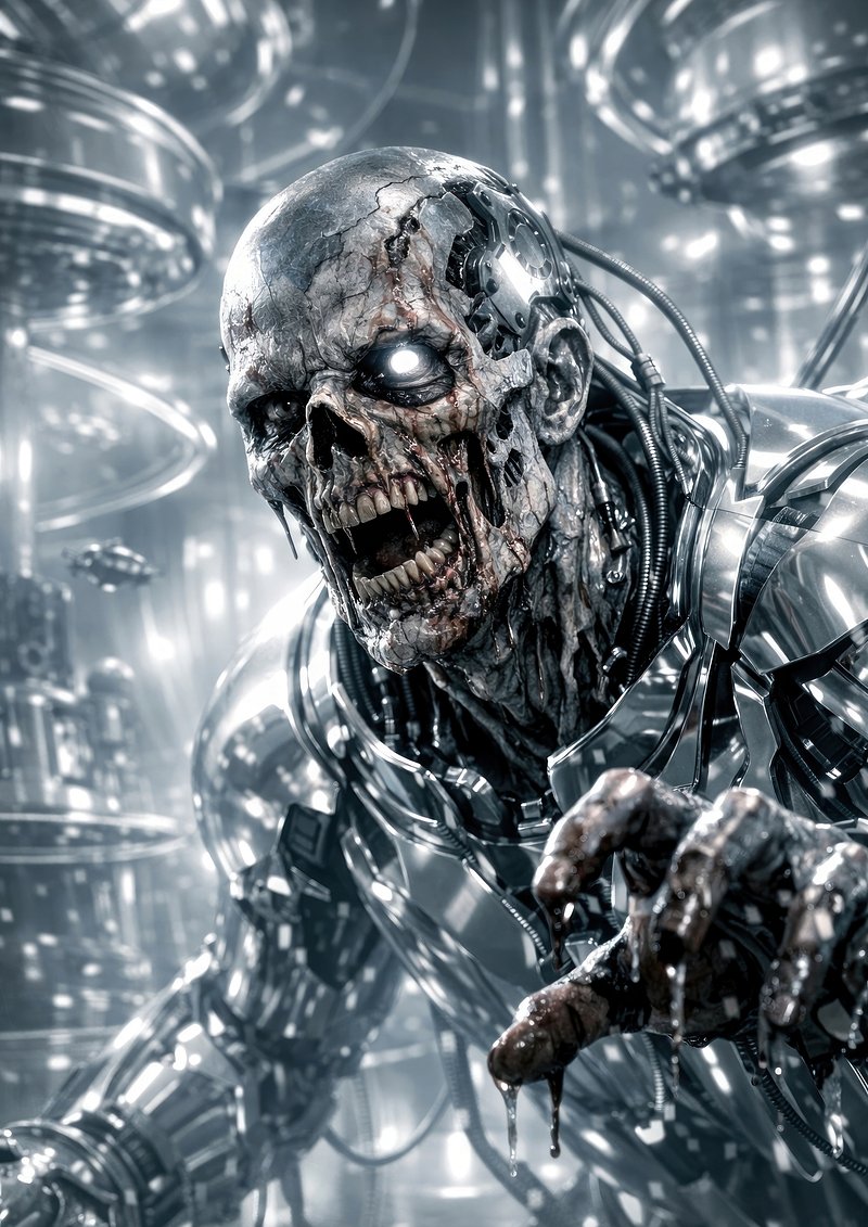 Futuristic cybernetic zombie apocalypse. https://www.rawpixel.com/image/25470211/futuristic-cybernetic-zombie-apocalypseView license