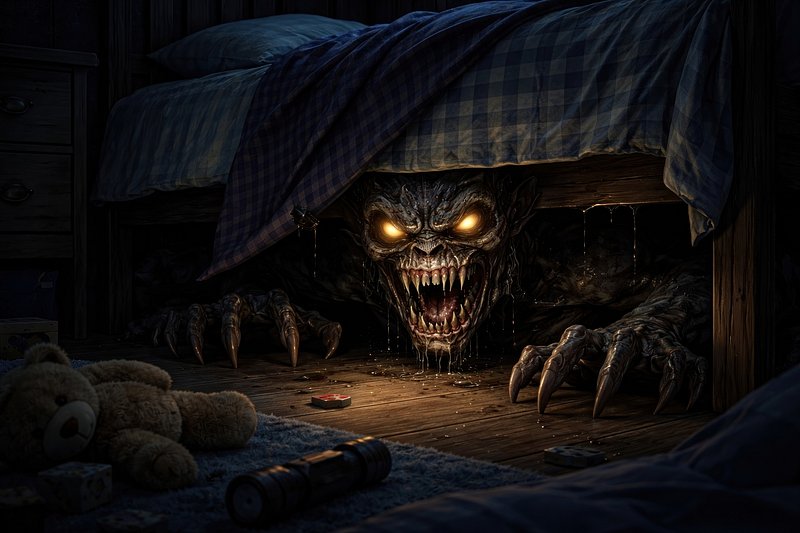 Terrifying monster under bed. https://www.rawpixel.com/image/25118830/terrifying-monster-under-bedView license