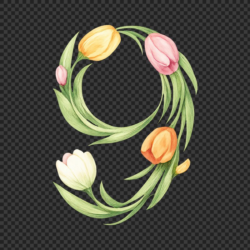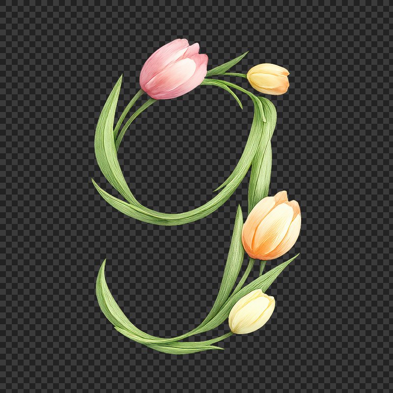 PNG Floral numeral with tulips https://www.rawpixel.com/image/25192755/png-floral-numeral-with-tulipsView license