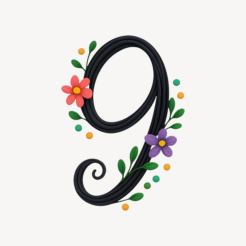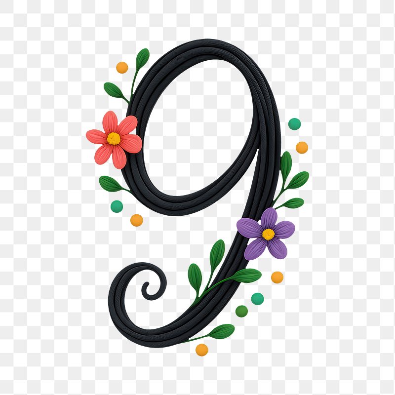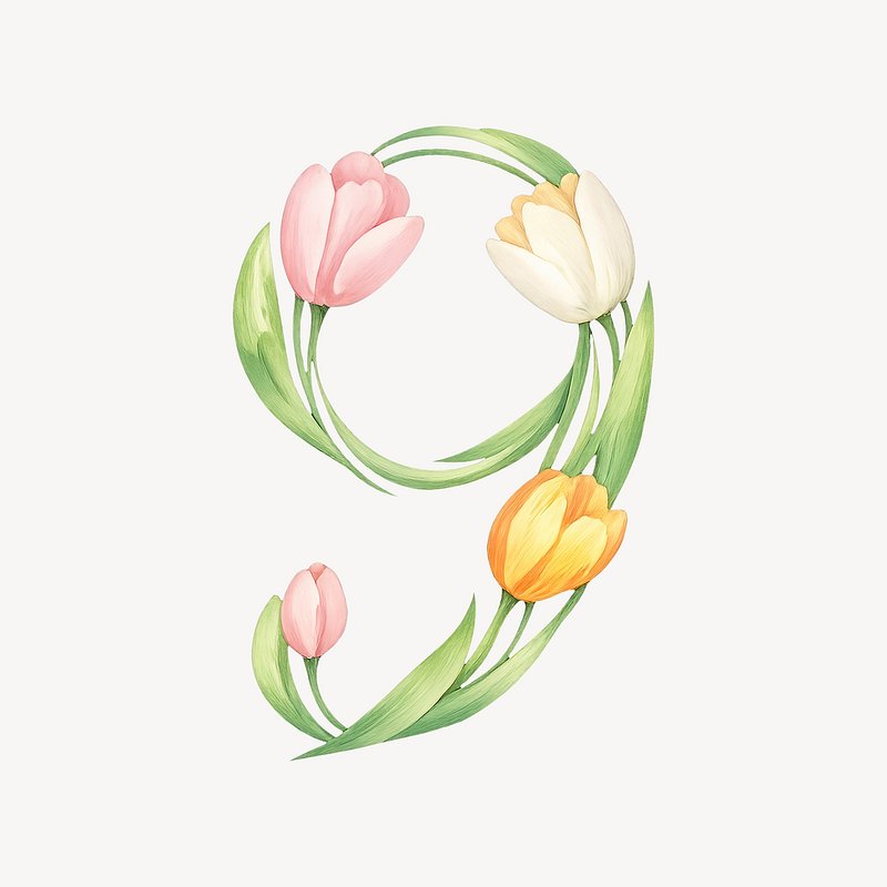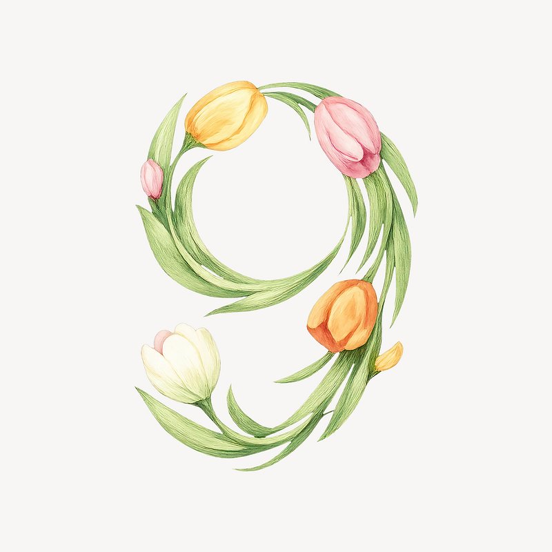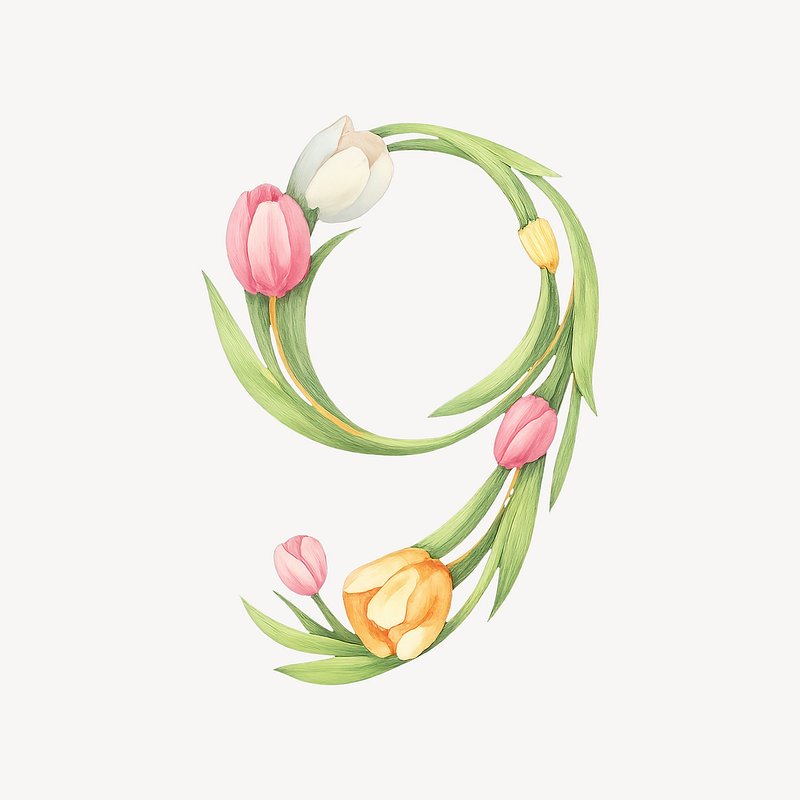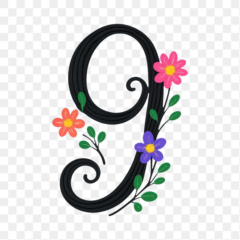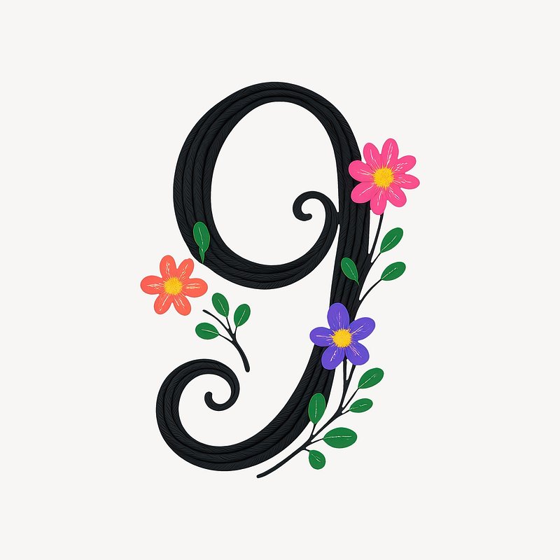 Floral numeral nine illustration. https://www.rawpixel.com/image/25399393/floral-numeral-nine-illustrationView license