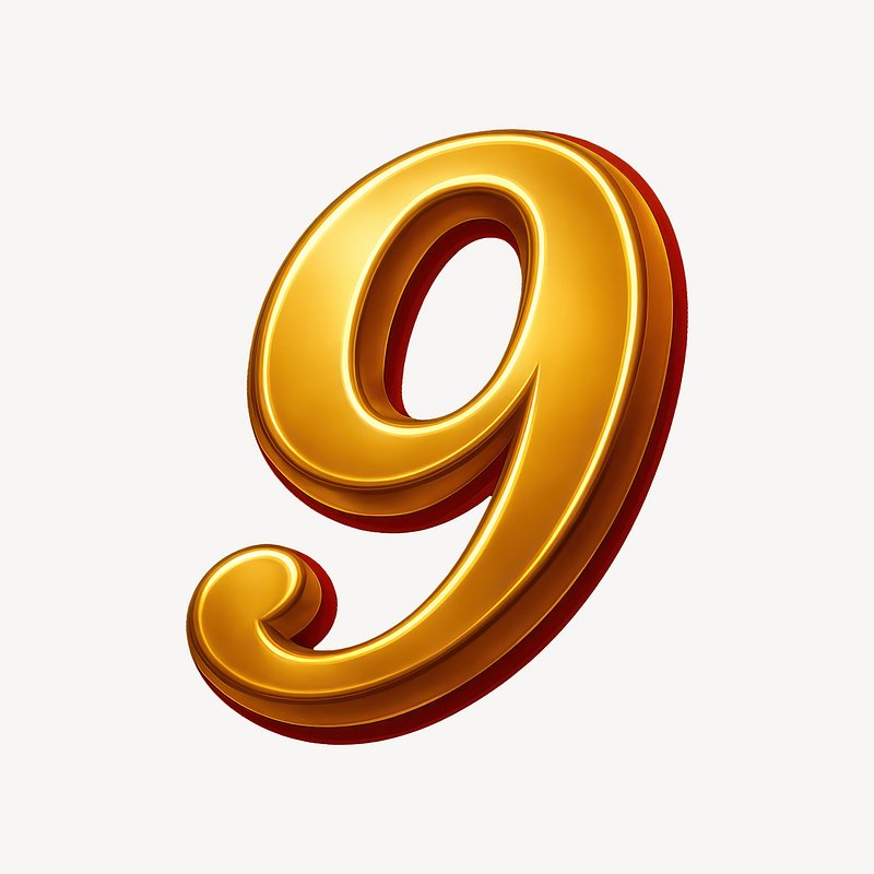 Golden numeral nine illustration https://www.rawpixel.com/image/24790682/golden-numeral-nine-illustrationView license