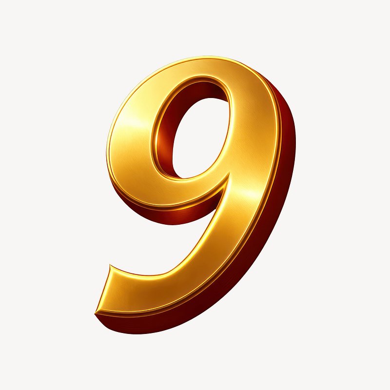 Golden number nine illustration. https://www.rawpixel.com/image/24790717/golden-number-nine-illustrationView license