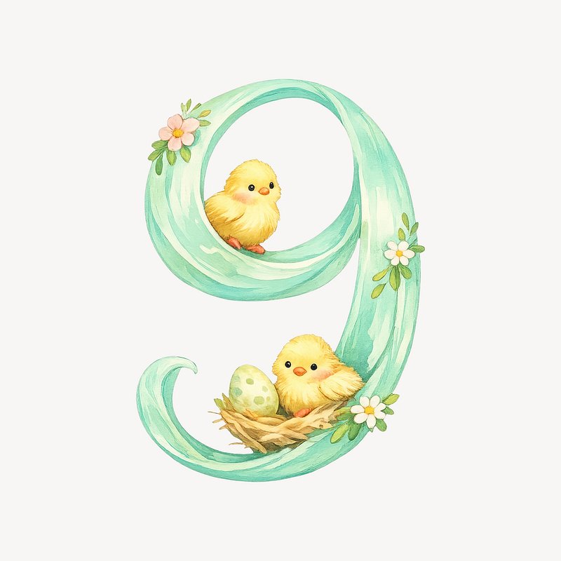 Whimsical numeral with chicks. https://www.rawpixel.com/image/25398675/whimsical-numeral-with-chicksView license