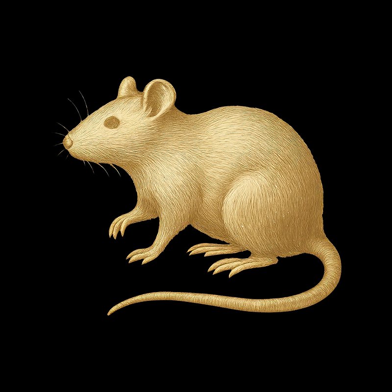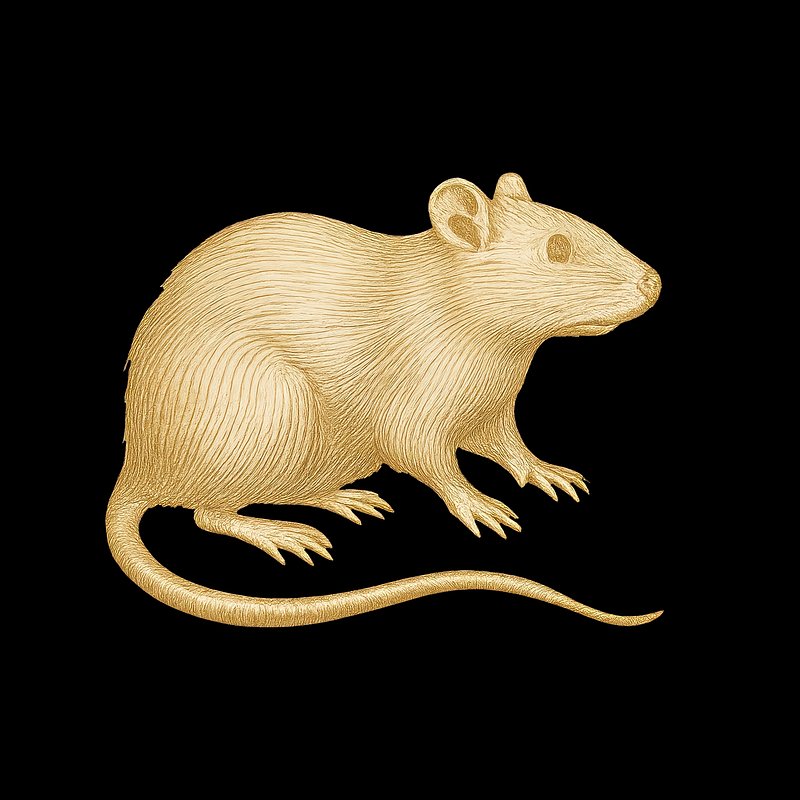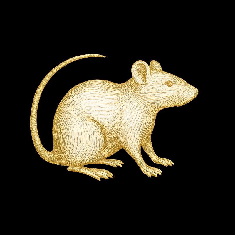 Golden rat illustration on black. https://www.rawpixel.com/image/24537530/golden-rat-illustration-blackView license