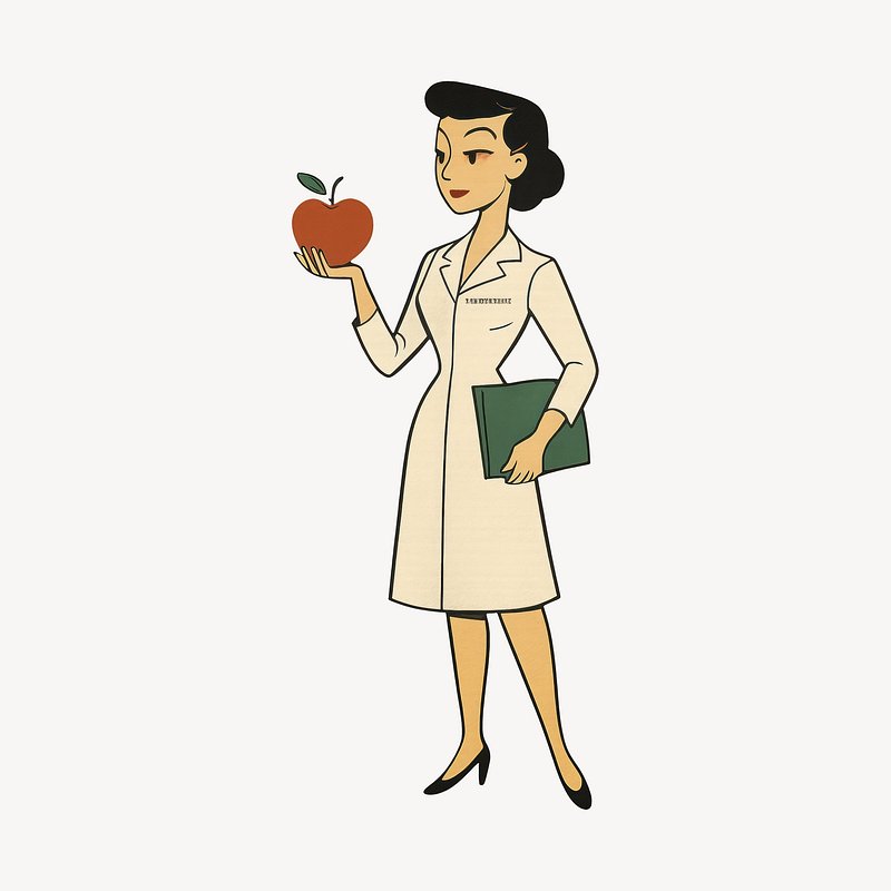Nutritionist holding apple illustration. https://www.rawpixel.com/image/22246975/nutritionist-holding-apple-illustrationView license