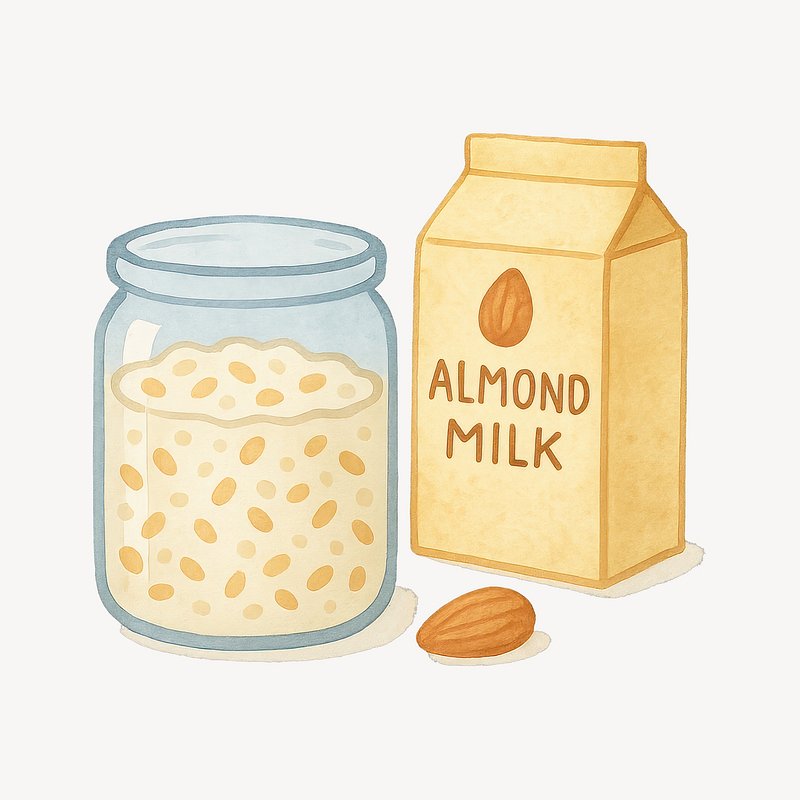 Illustration of almond milk ingredients. https://www.rawpixel.com/image/20674695/illustration-almond-milk-ingredientsView license