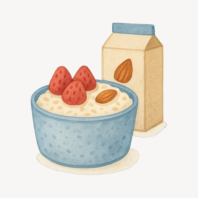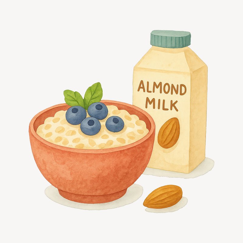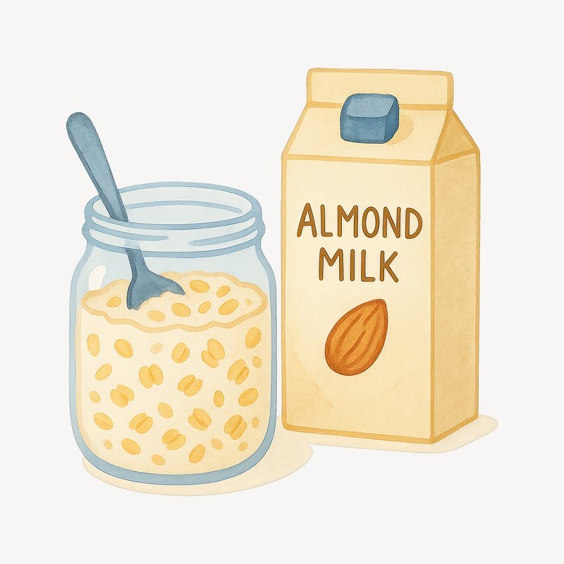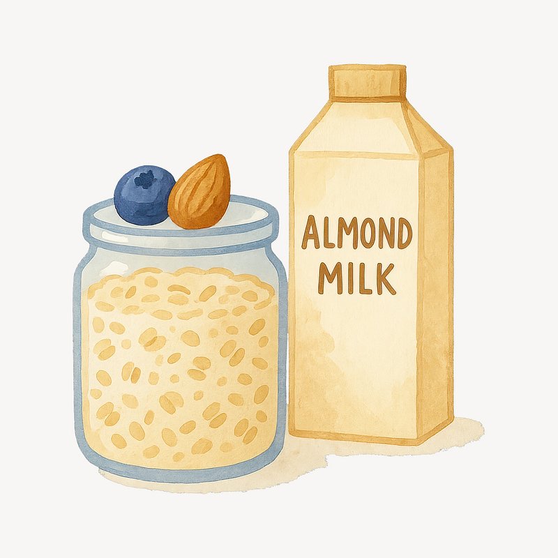 Almond milk breakfast illustration. https://www.rawpixel.com/image/20670540/almond-milk-breakfast-illustrationView license