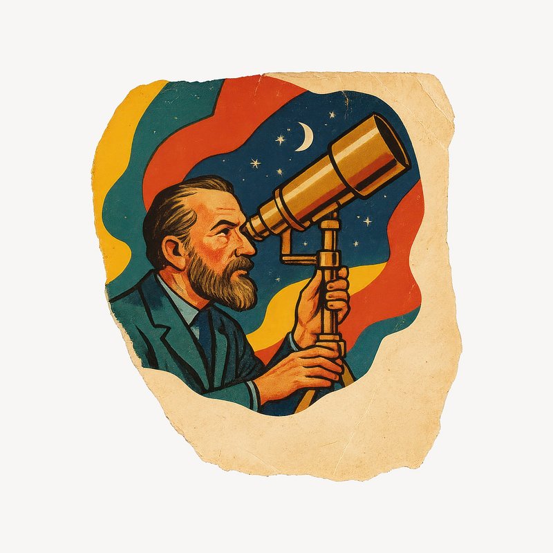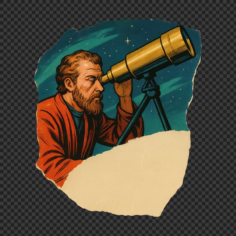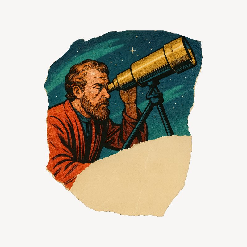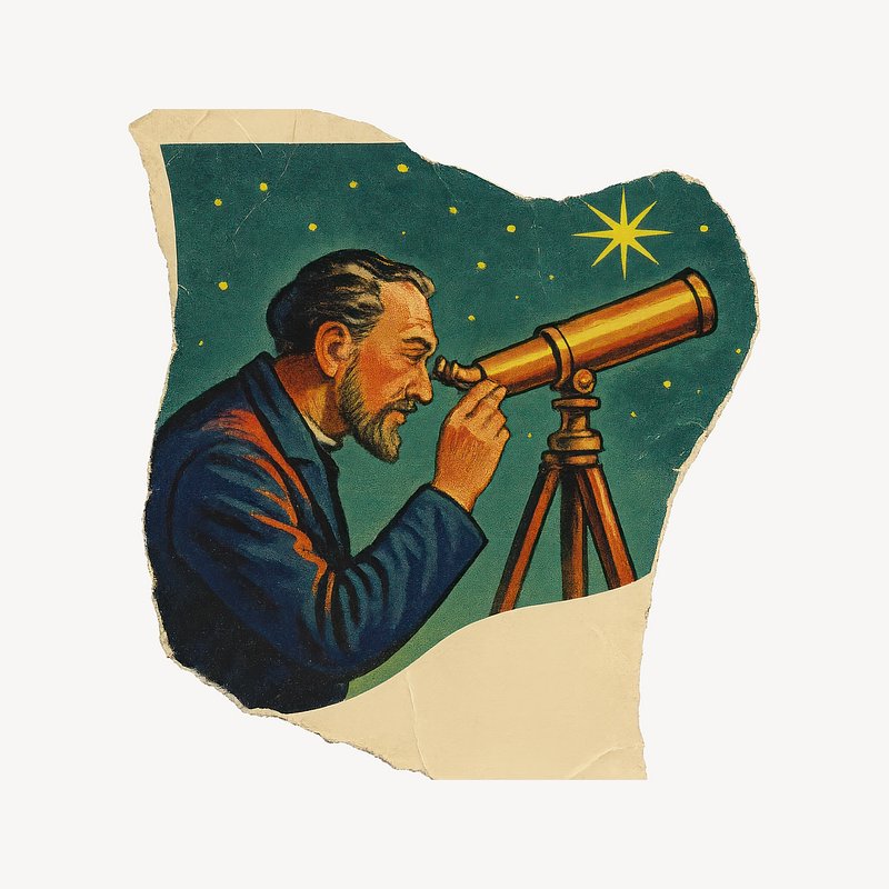 Vintage astronomer using telescope illustration. https://www.rawpixel.com/image/24568052/vintage-astronomer-using-telescope-illustrationView license