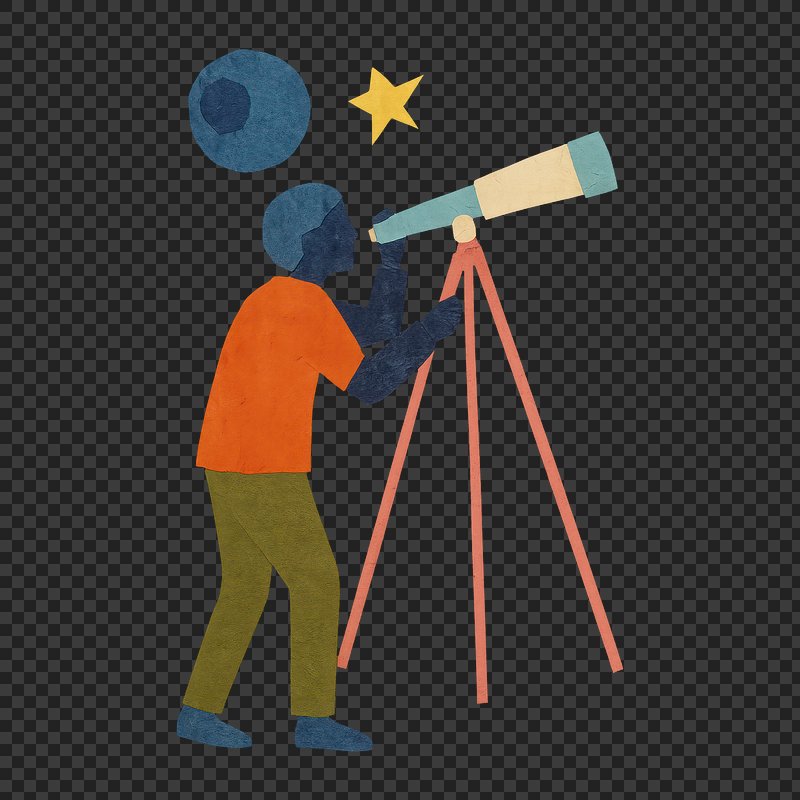 PNG Man observing stars through telescope. https://www.rawpixel.com/image/24450338/png-man-observing-stars-through-telescopeView license