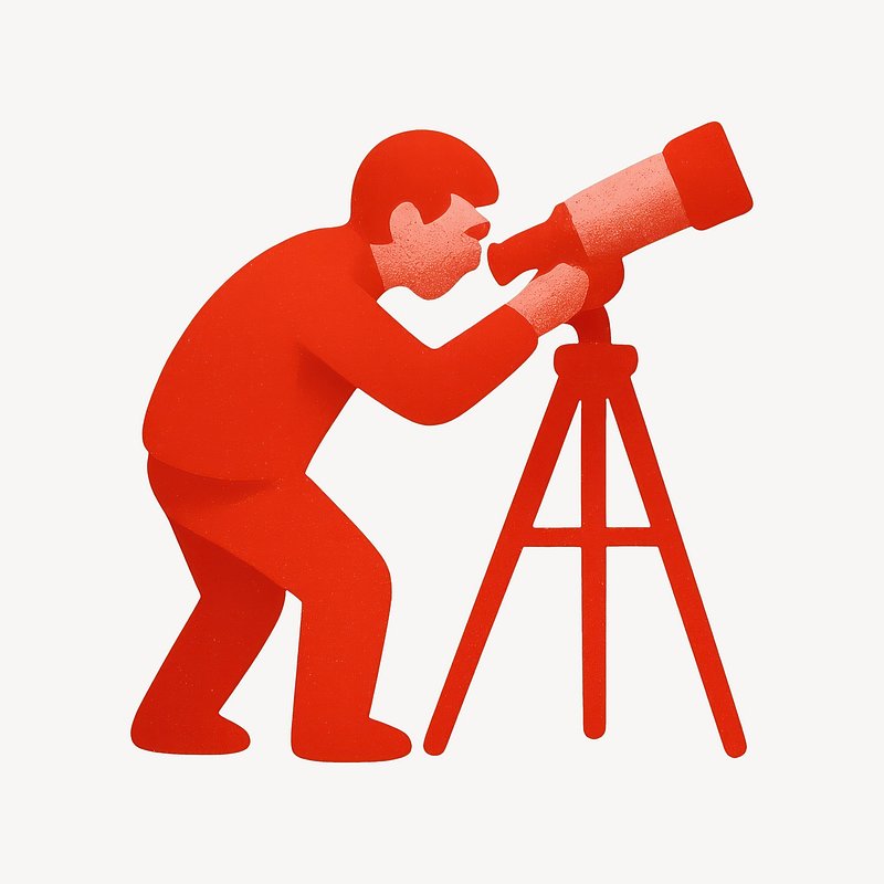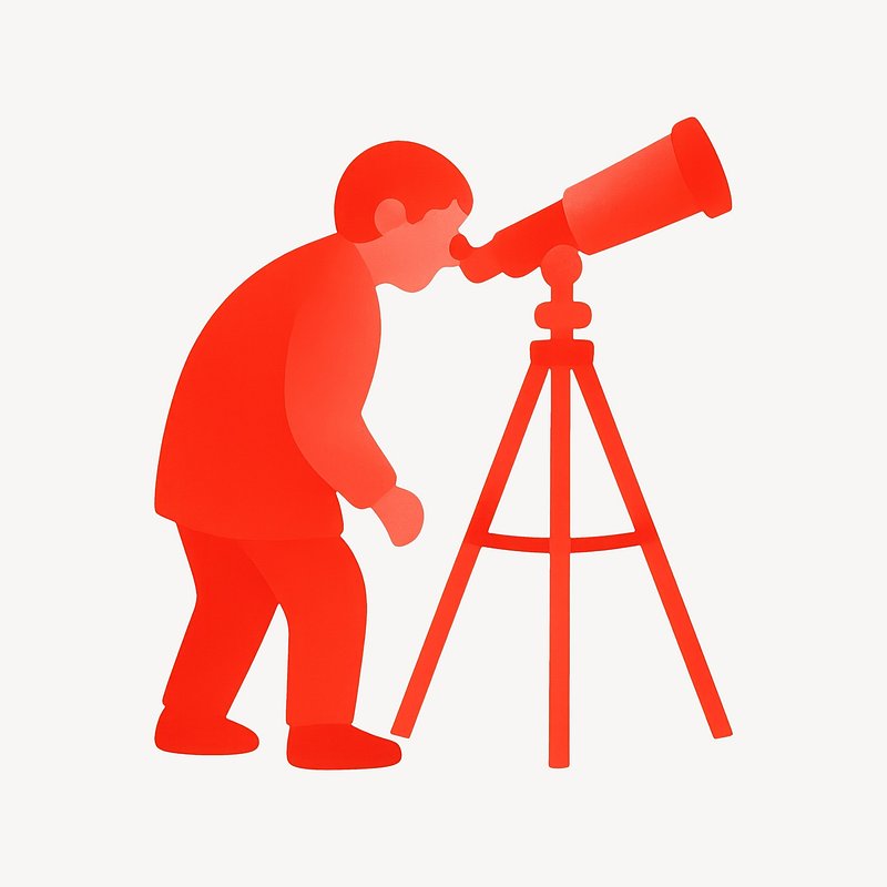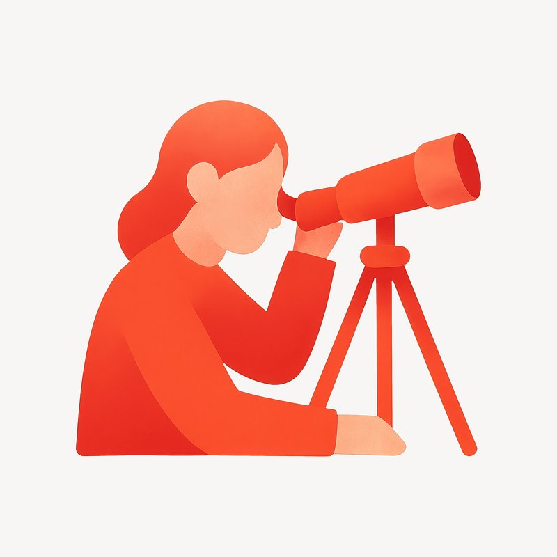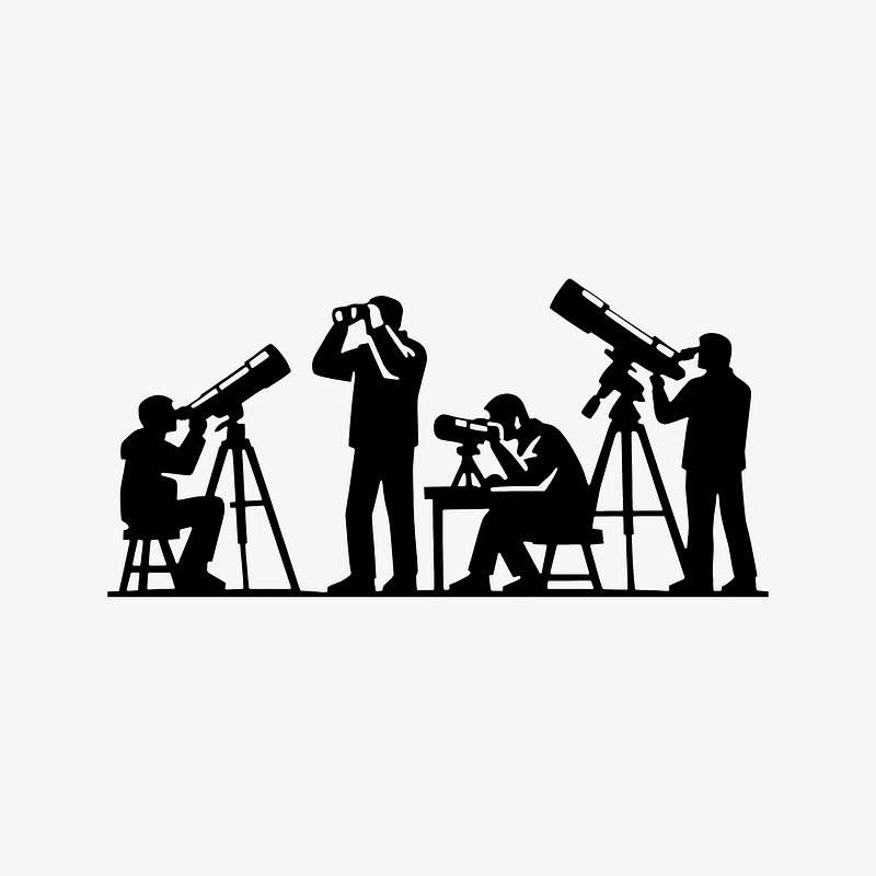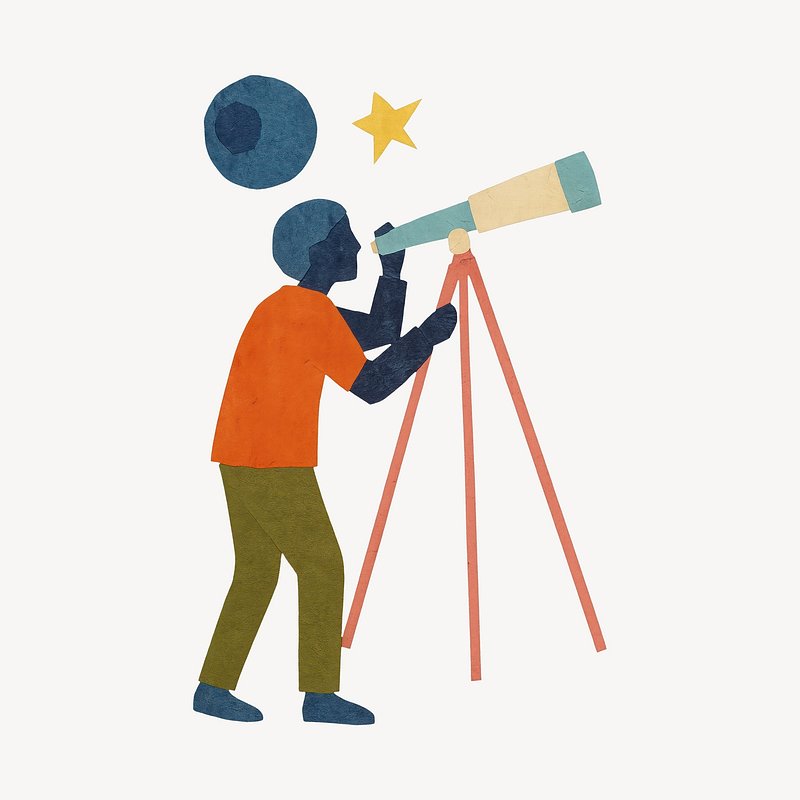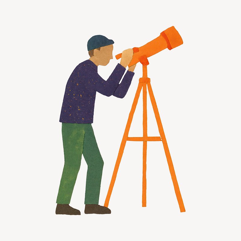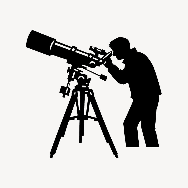 Person observing through telescope illustration. https://www.rawpixel.com/image/25061750/person-observing-through-telescope-illustrationView license