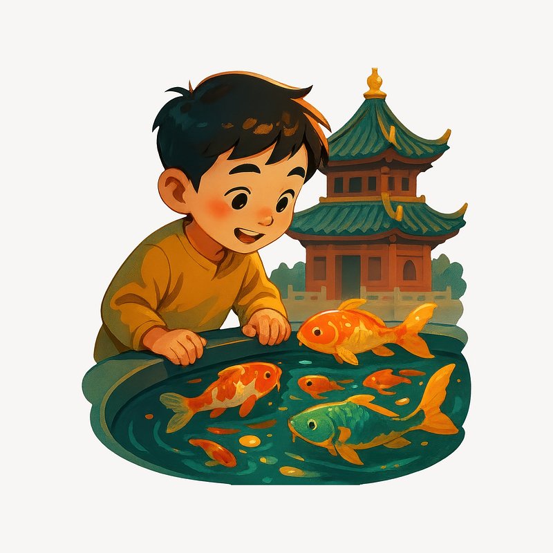 Child admiring colorful koi fish. https://www.rawpixel.com/image/25064944/child-admiring-colorful-koi-fishView license